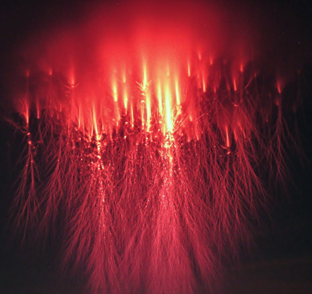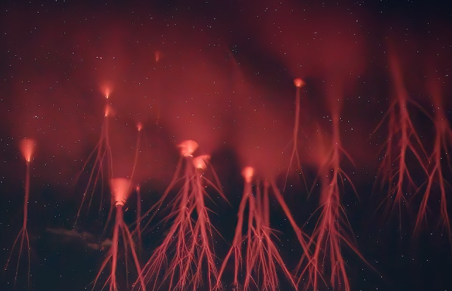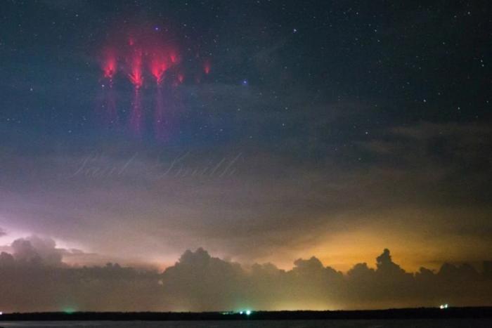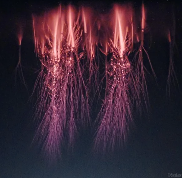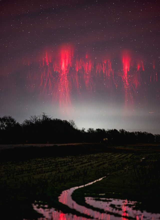 Красные спрайты - это удивительные атмосферные явления, которые происходят высоко над грозовыми облаками, примерно на высотах от 50 до 90 километров. Они выглядят как вертикальные или раздвоенные свечения красного цвета и связаны с молниями, особенно верхними разрядами в грозовых облаках. Появляются они очень быстро - всего за миллисекунду после вспышки молнии - и часто их трудно заметить без специального оборудования, поскольку их яркость невелика. Красные спрайты являются результатом сильных электромагнитных полей, возникающих вследствие мощных гроз, которые возбуждают ионизацию верхних слоёв атмосферы. Эти явления интересны учёным, потому что они помогают понять взаимодействие между земными электромагнитными процессами и верхними слоями атмосферы, а также связаны с глобальными электрическими полями. Исследование красных спрайтов важно для расширения наших знаний о динамике атмосферы и её електромагнитных процессов.