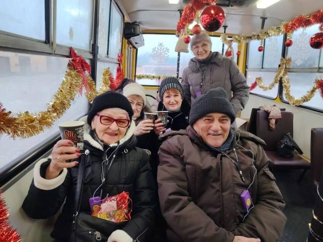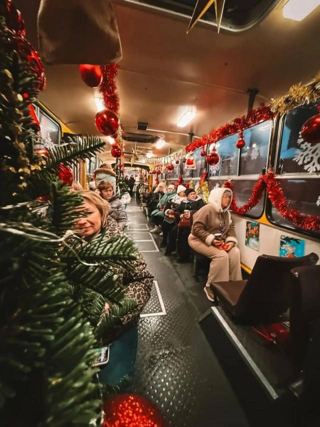 «Икарус-280» оформлен в советском стиле — он уже совершил три рейса. Среди первых пассажиров были ветераны и лучшие сотрудники предприятия МУП «ПАТП №2».