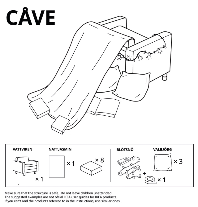 Во время локдауна 2020 года IKEA опубликовала руководство по созданию укрытий из мебели и предметов интерьера. Этот проект стал популярным способом развлечься и провести время дома в условиях ограничений.