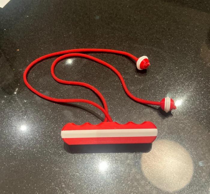 Пластиковая ручка длиной около 10 сантиметров с веревкой длиной около 1 метра, подаренная на Рождество