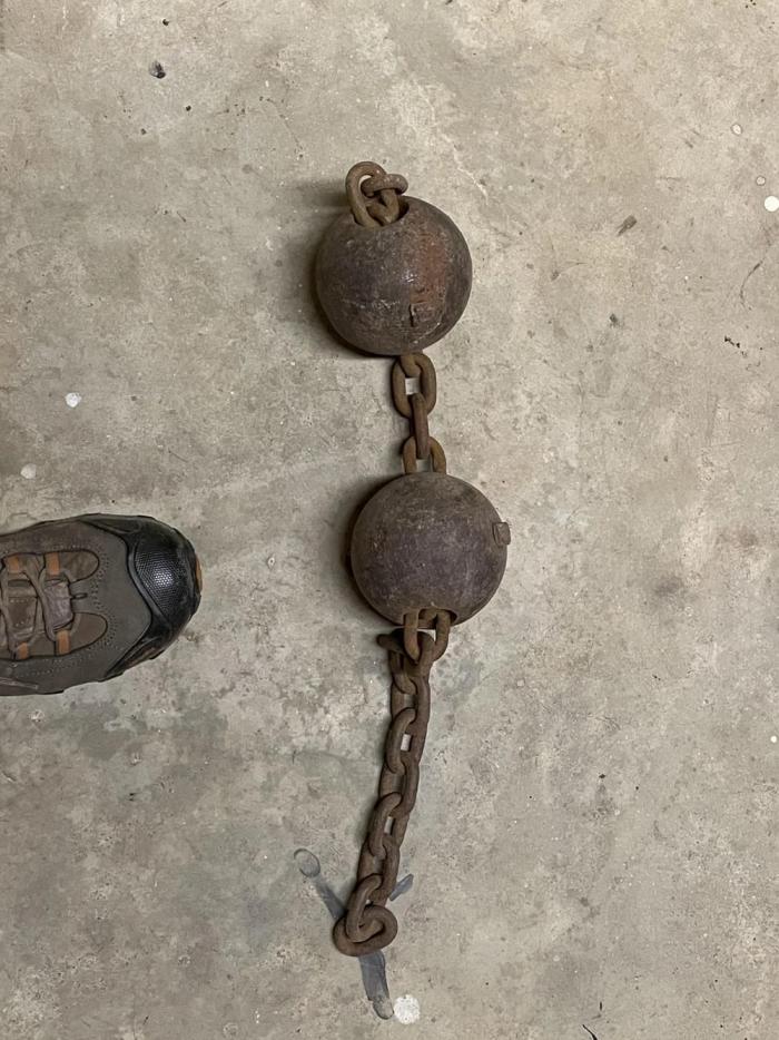 Металлические ядра, соединённые цепью, обнаружены закопанными во дворе