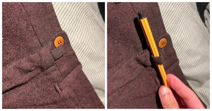 Петля-«застёжка» рядом с пуговицей на винтажных шерстяных мужских шортах