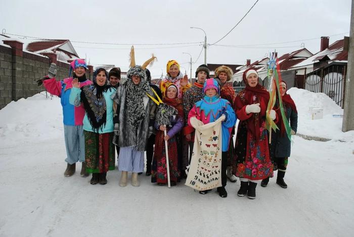 Лица скрывали за самодельными масками или разрисовывали сажей и свекольным соком, а в руках несли чучела, палки и косы, шумно и нарочито грубо требуя даров.