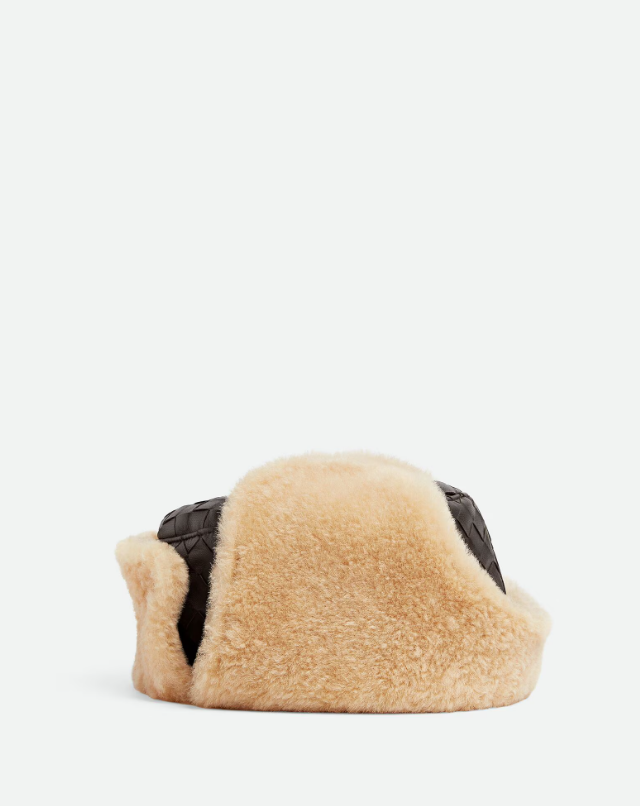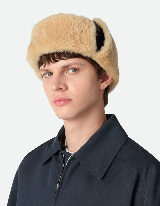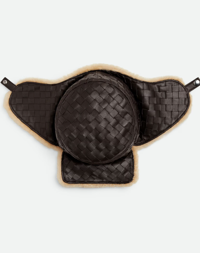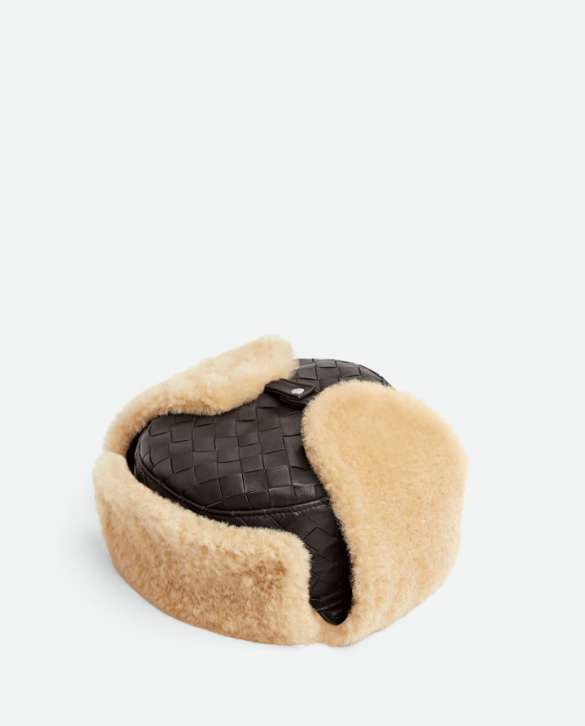Итальянский люксовый бренд Bottega Veneta представил в своей коллекции ушанку в стиле советских времен стоимостью 1200 евро, что примерно равняется 113 тысячам рублей. Головной убор сделан из фирменной кожи Intrecciato, а мягкая подкладка из овчины.