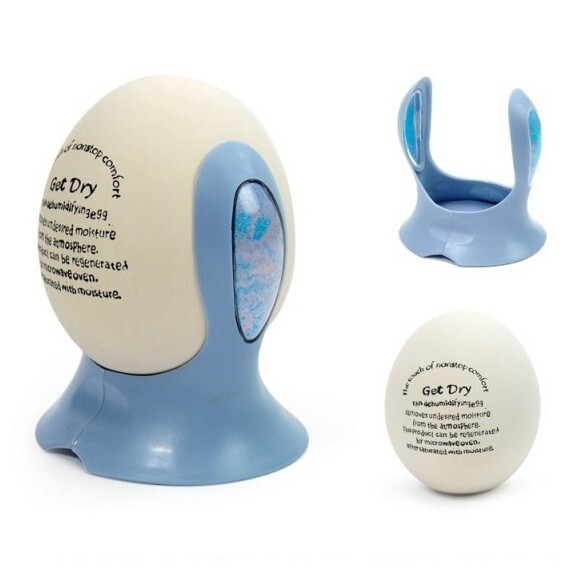 Влагопоглощающее яйцо - осушитель воздуха. Гаджет создан, чтобы дарить вещам и помещениям свежесть. Яйцо нужно положить в ящик комода, на полку с обувью или в угол гардеробной, и оно начнёт незаметно впитывать излишнюю влагу, которая является причиной появления неприятных запахов, ржавчины и грибка.