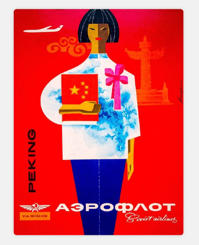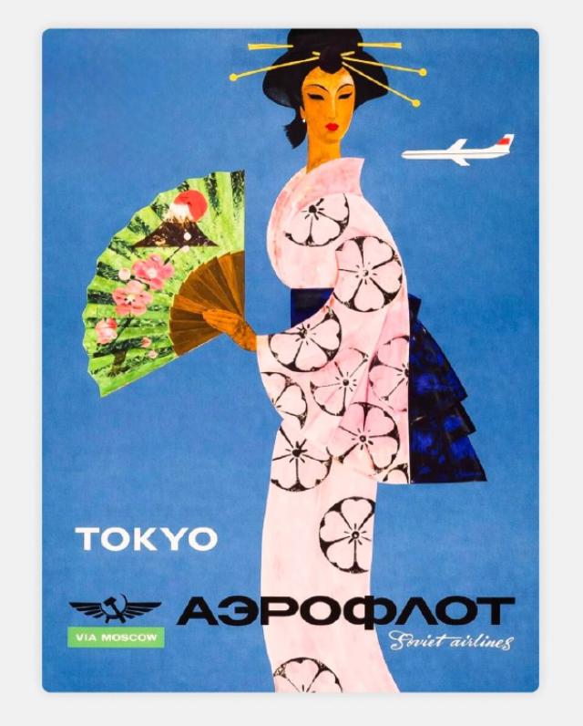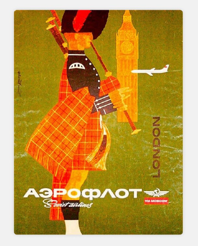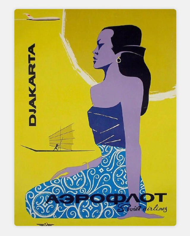 Они не рекламировали перелёты - они рекламировали будущее. В 1960-е каждый постер Аэрофлота был окном в мир, где самолёт становился мостом между культурами. Художник Виктор Асерьянц создавал не географические карты, а карты желаний: знакомые силуэты Пекина, Токио, Гаваны превращались в чистые, яркие символы. И в центре этой вселенной неизменно стояла Москва - отмеченная скромной, но властной надписью «via Moscow». Эти плакаты дышали идеей мира без виз и барьеров, где советское небо связывает континенты. Они продавали не место в салоне, а место в этой прекрасной утопии - и делали это с гениальной простотой.