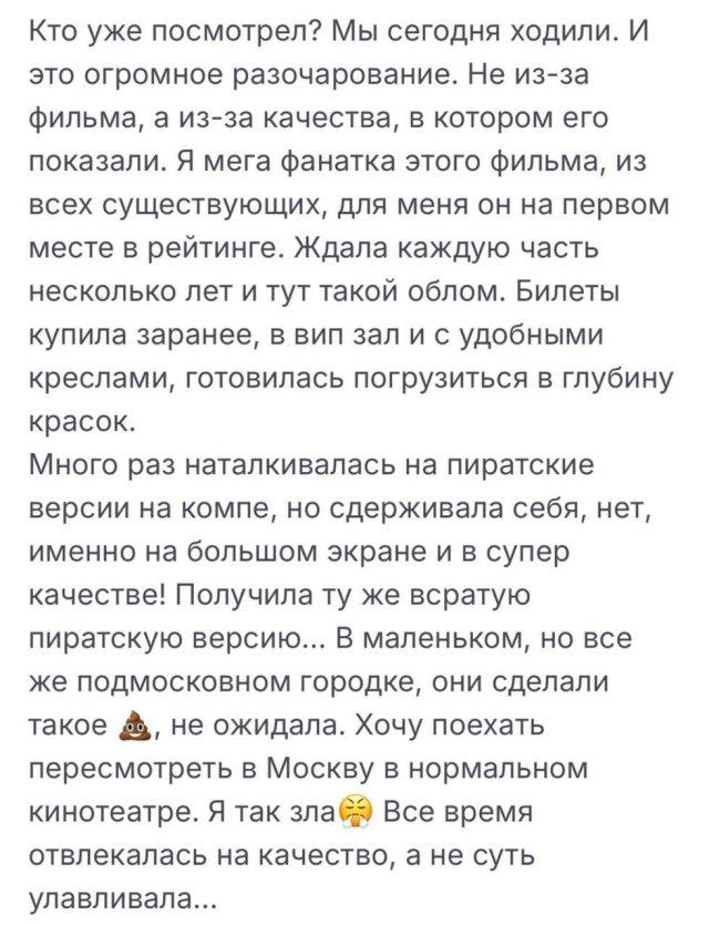 Зрители пишут, что это убивает саму суть Аватара — визуал и музыку: вместо вау-эффекта получили шакальное изображение, дерганые движения, искажения звука и нулевое погружение.