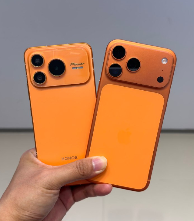 Honor Power 2 обзавелся знакомым оранжевым корпусом и выпирающим модулем камеры, схожим с оригиналом. Даже количество камер повторяет стиль Apple, однако внутри у смартфона всего два объектива - один из них - просто декоративный.