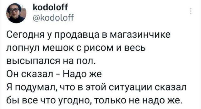 Вот и новенькая подборка забавных твитов обо всем от веселых ребят с просторов социальных сетей. Отличная оказия для маленького перерыва и поднятия настроения. Так что всех милости просим в пост и приятного просмотра.