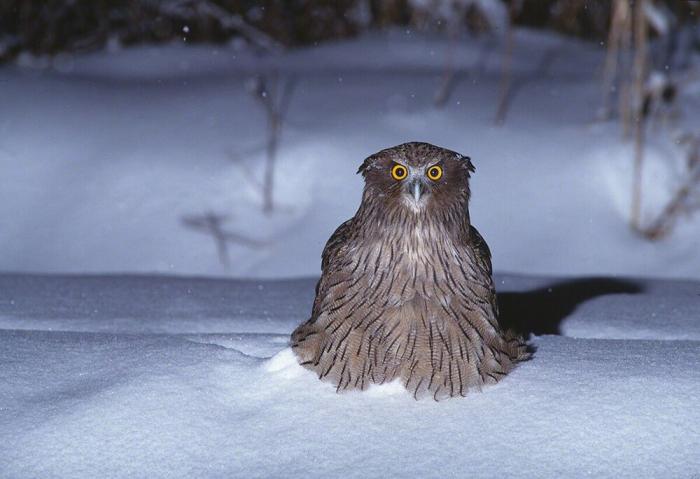 Представьте: сова размером с орла, которая не ловит мышей. Сова с голыми лапами. Сова, которая ШУМНО хлопает крыльями — в отличие от всех остальных сов на планете. И знаете почему? Потому что её добыча под водой всё равно ничего не слышит.