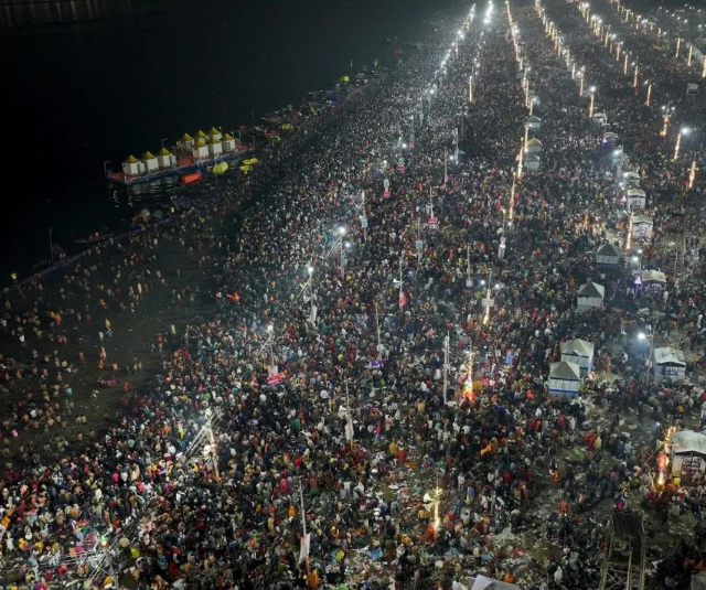 Более 650 миллионов человек - что больше, чем вся сумма населения США и Великобритании вместе - собираются в временном «палаточном городе» ради фестиваля Маха Кумбха Мела.