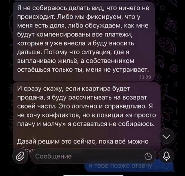 Девушка снимала у мужчины жилье, пока не поняла, что живет в ипотечной квартире и ее деньги уходят на оплату кредита. Красотка смекнула, что так делать негоже, поэтому решила потребовать долю. Кто прав в этой истории, а кто виноват? Обсуждаем в комментариях.