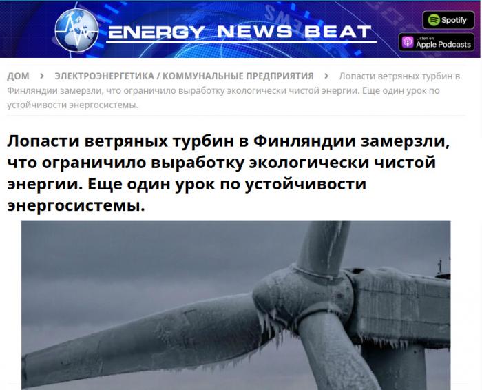 Пока финские власти хвалились экологичностью, арктический циклон доходчиво объяснил, что зеленая энергетика не всегда может справиться с суровой реальностью.