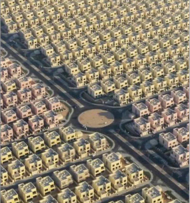 Район Над-эль-Шеба в Дубае, известный своей впечатляющей планировкой: 1500 абсолютно идентичных домов, образующих идеально ровное «море» жилья.