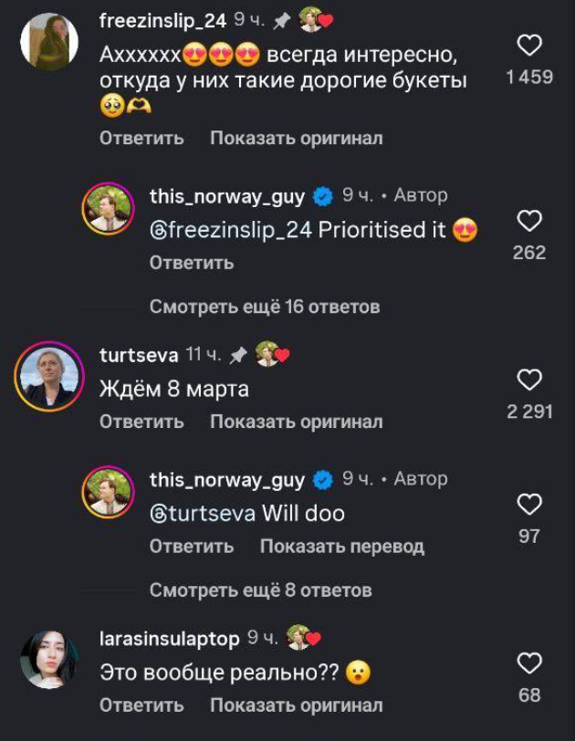 Западные девушки в Инстаграме увидели видео с русскими мужчинами, которые дарят своим женщинам огромные букеты в честь Дня всех влюблённых - и сразу же проснулась нешуточная зависть.