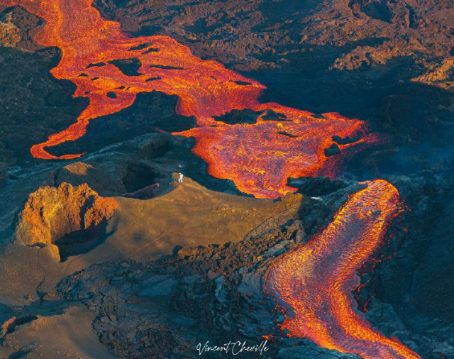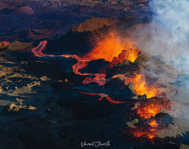 Действующий Питон-де-ла-Фурнез на острове Реюньон в Индийском океане начал извержение. Туристам, оказавшимся на склоне, пришлось экстренно покинуть остров. Извержение, начавшееся утром пятницы, 13 февраля, продолжается и по сей день, раскрашивая землю потоками лавы.