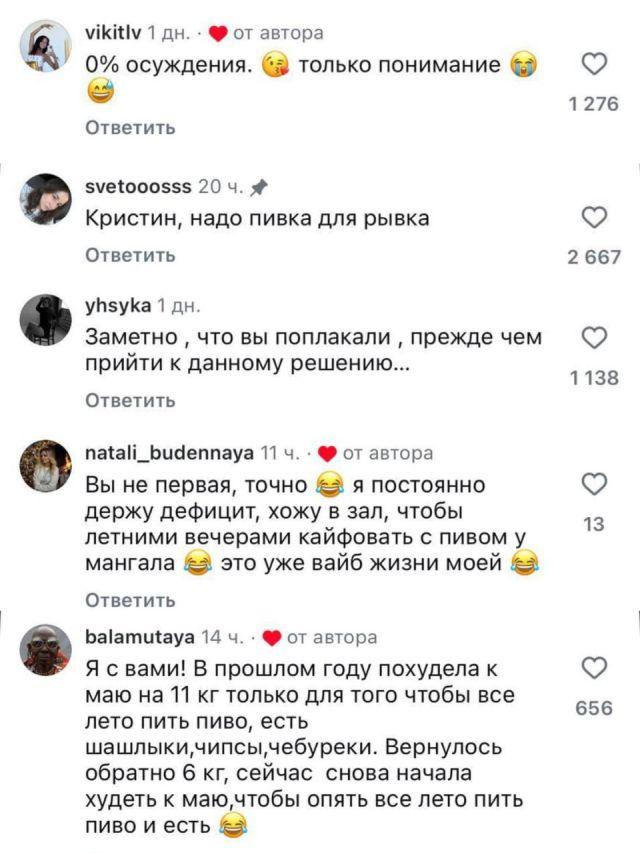 Девушка, что хочет скинуть 10 кг, чтобы летом у неё была возможность безболезненно поддаваться соблазнам в виде пива и рыбки — такой стимул тут же нашёл поддержку в лице пивозавров в комментариях. Достойная мотивация!