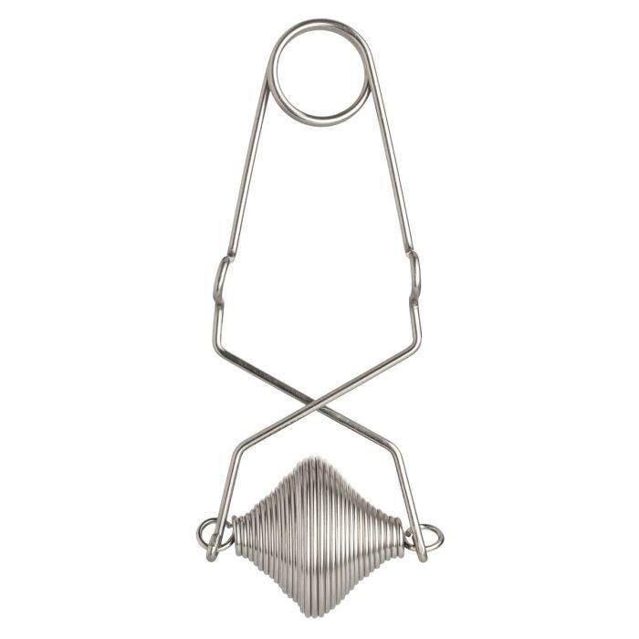 5. Кухонный инструмент из серебристого металла спиралевидной формы, который можно сжимать, как щипцы, чтобы открыть