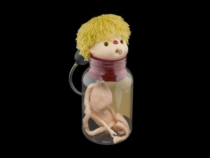 2. Кукольная головка с прикрепленным снизу игрушечным эмбрионом и насосом