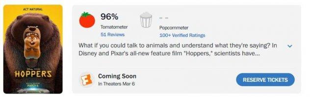 Новый мультик «Прыгуны» от Pixar — шедевр: новинка про бобров уделала даже «Головоломку» и дебютировала с 96% свежести на Rotten Tomatoes. Всех покорил сюжет про девочку-подростка Мейбл, которая переносится в тело робота-бобра, чтобы помешать местному мэру реализовать планы по застройке. Хвалят юмор, трогательные и неожиданные сцены — все 105 минут пролетают на одном дыхании. Новинку покажут и в России — в кинотеатрах уже 12 марта.
