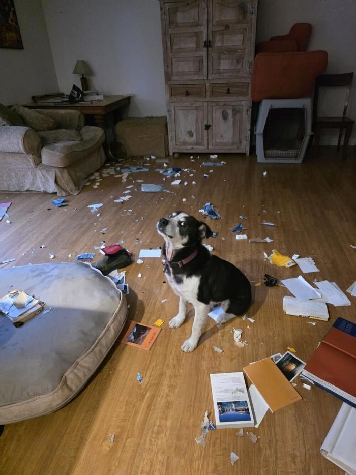 В доме тишина. Просто очень подозрительно тихо. Вы заглядываете в комнату, а там... О, боже. Подушка выпотрошена, обои поцарапаны, а пол усыпан непонятной субстанцией. Виновник разгрома сидит в углу с самым невинным видом, будто так и было.