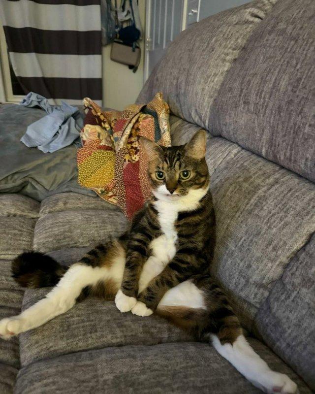 У этого кота по кличке Прелесть отсутствуют два верхних клыка, поэтому он стал популярным в интернете из-за своей недовольной мордочки.