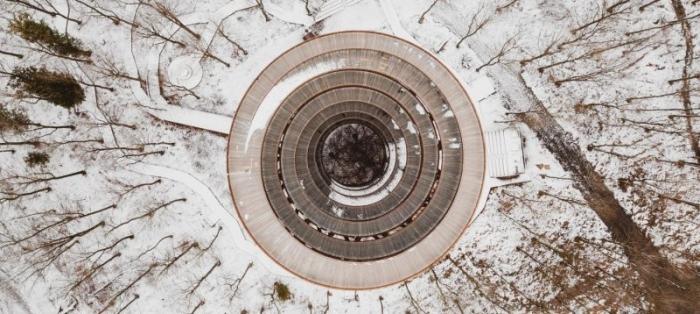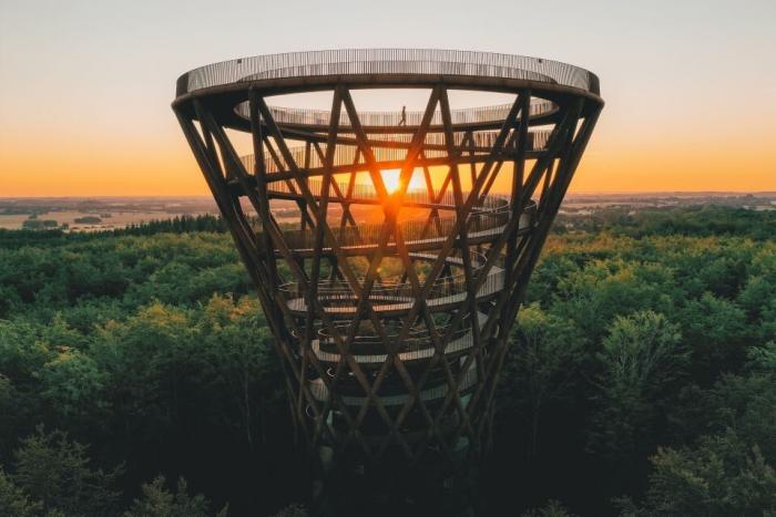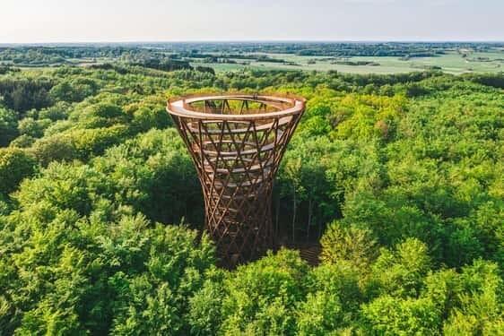 На вершине, на высоте 45 метров, гостей ждёт смотровая площадка с панорамным обзором на 360 градусов. В ясную погоду горизонт раздвигается до самого Копенгагена и даже до шведского Мальмё по ту сторону пролива. Это место принадлежит парку приключений Camp Adventure, и оно создано для того, чтобы человек мог буквально ощутить саму суть леса, не потревожив его обитателей.