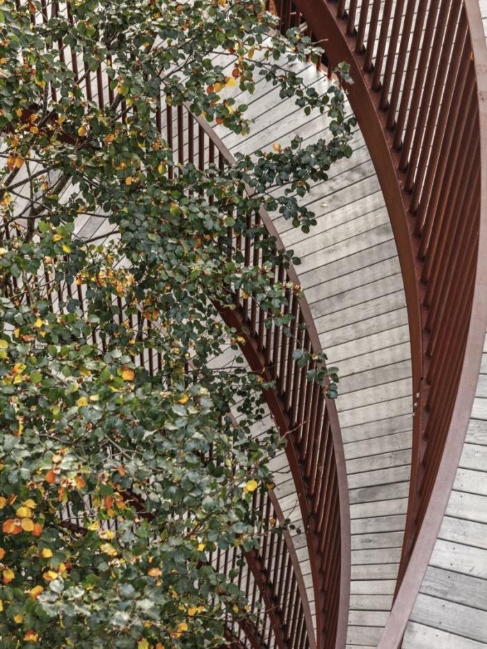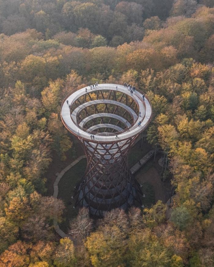 Скруглённая башня, напоминающая гигантские песочные часы, вырастает прямо из земли, не касаясь ни единой ветки. Она называется Сковторнет, что в переводе с датского означает «Лесная Башня».