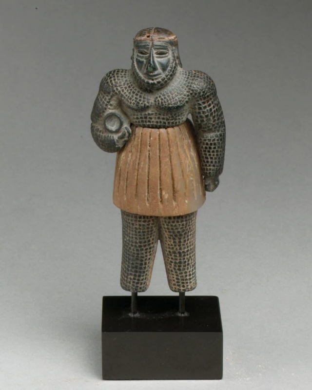 14. Этой мужской фигуре с чешуйчатой кожей 4000 лет, её относят к археологическому комплексу Бактрии-Маргианы или восточного Ирана
