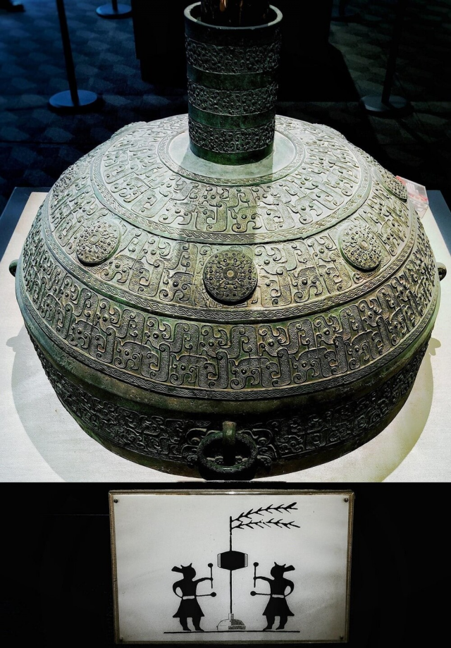13. Ритуальный сосуд для вина с крышкой "Гонг" с декором в виде тигра и совы