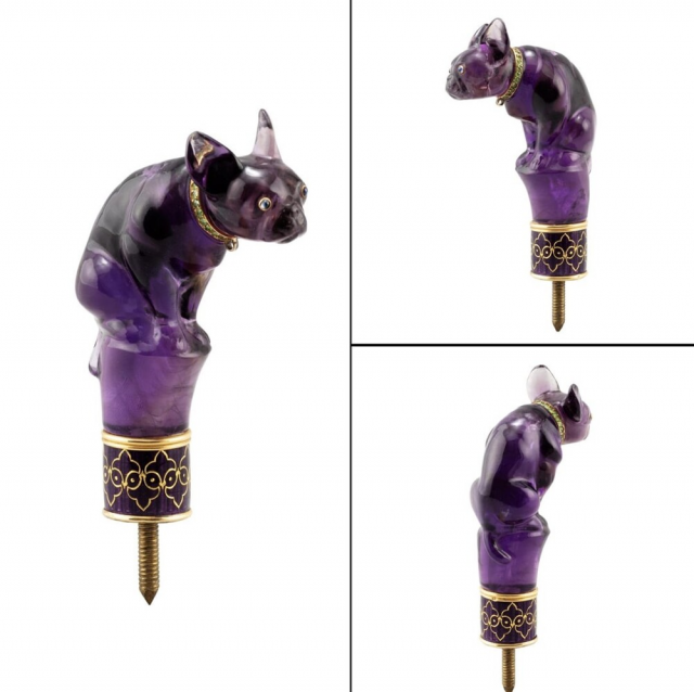 7. Ручка зонта в форме аметистового сидящего бульдога, Париж, около 1860 года