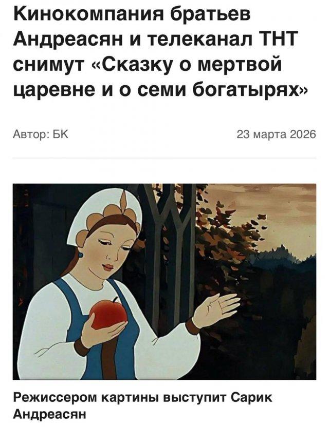 В Сети уже шутят, что Сарик Андреасян не успокоится, пока не переснимет всю русскую классику. Им движет еще и финансовая выгода, ведь "Сказка о царе Салтане" за месяц собрала более 2 млрд рублей (не говоря уже о новогоднем "Простоквашино", который побил несколько рекордов). Что касается новой сказки Пушкина, то пока что кастинг не объявили, но, зная Сарика и его скорость, сделают это быстро.
