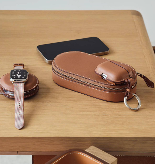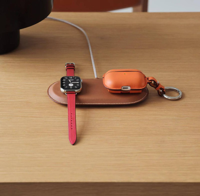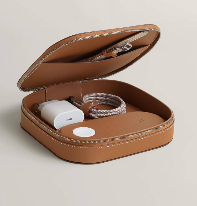 Компания Herm?s представила новую линейку аксессуаров для зарядки устройств Apple. В коллекцию вошли как одинарные магнитные зарядные устройства, так и двойные комплекты с дополнительным чехлом-сумкой. Стоимость базовой версии начинается примерно от €950. Топовые решения в наборе с аксессуарами оцениваются почти в €3950.