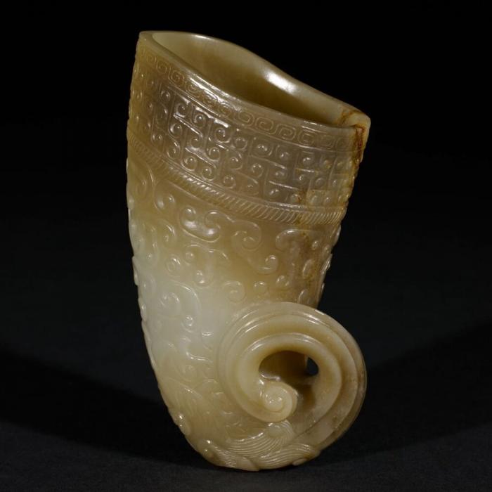 9. Нефритовый рог для питья с мотивом макары - водной "химеры". Китай, династия Тан, 750 год нашей эры