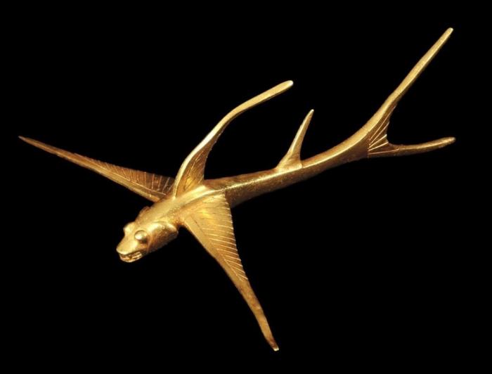 8. Золотая подвеска в виде летучей рыбы, культура Сан-Агустин, 1-900 гг. н.э.
