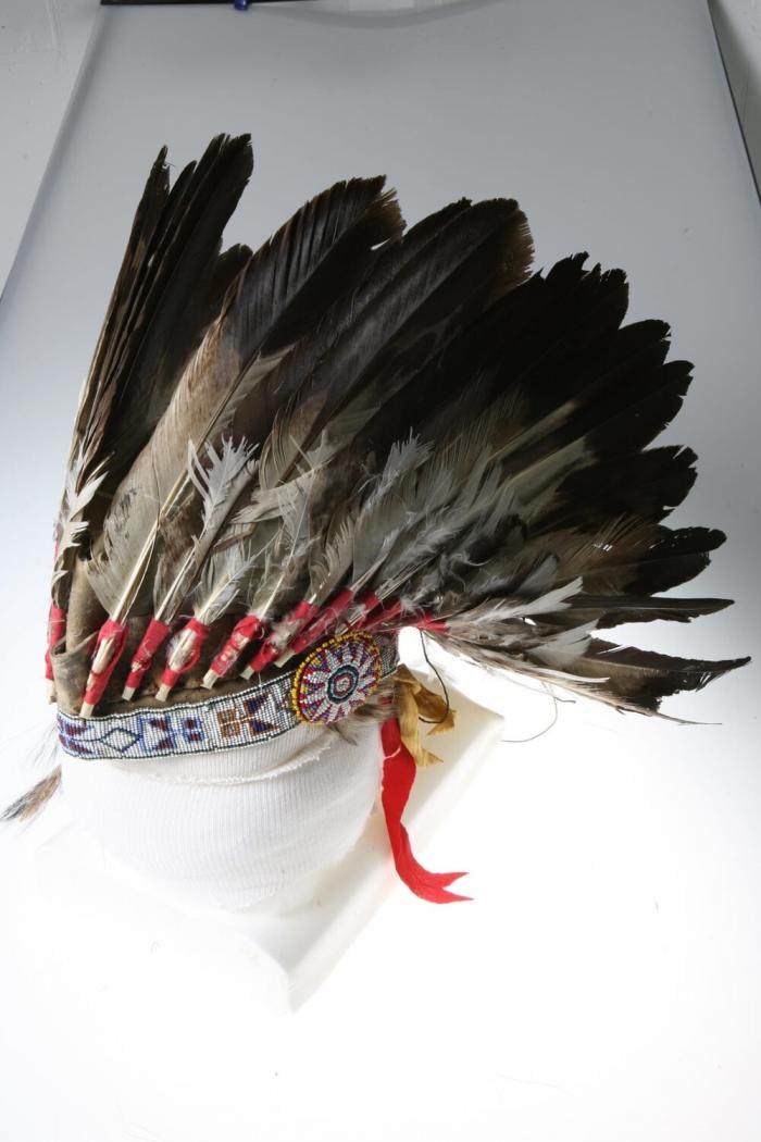 16. Головной убор индейцев племени сиу из перьев с украшенной бисером лентой, 1850-1900 гг.