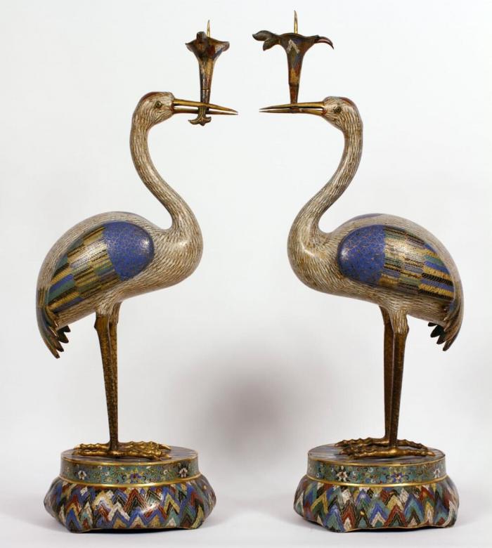 13. Подсвечники в виде журавликов из перегородчатой эмали. Китай, XVIII век