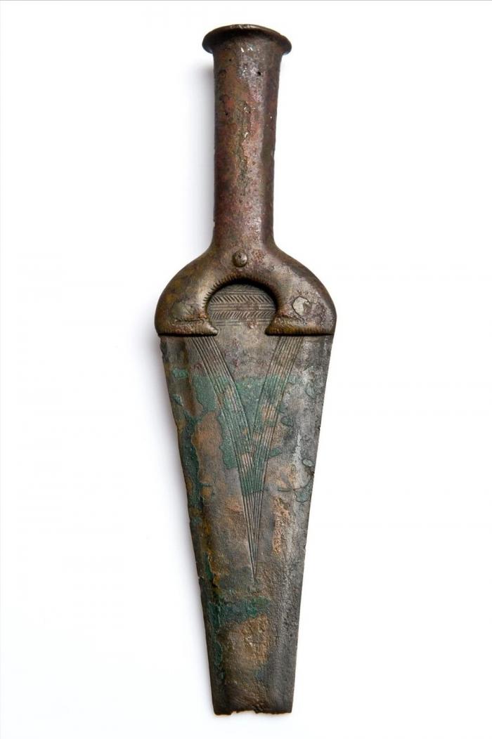 6. Фрагмент бронзового кинжала, найденный в начале 1900-х годов в Добрче, Польша. Между 2400 и 1500 годами до н. э.