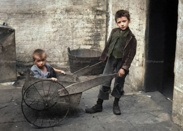 Томми Нейл везет одного из своих братьев в самодельной тачке. Мать мальчиков умерла два года назад, в ее свидетельстве о смерти четко указана причина — «истощение». В 1890-е годы Лондон викторианской эпохи столкнулся с масштабной проблемой детской бездомности. Тысячи детей, известных как «уличные сорванцы» или «беспризорники», выживали на улицах города. Многие из этих детей были сиротами, но значительная часть происходила из неблагополучных семей, где царил алкоголизм, пренебрежение и безработица.