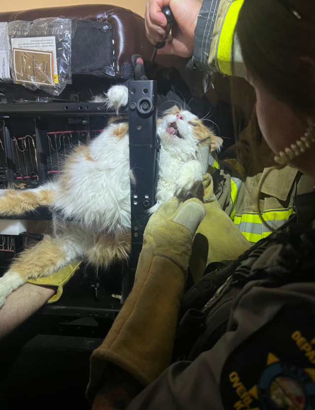 В США толстый домашний кот испугался визита к ветеринару и попытался спрятаться в кресле, но его масса оказалась слишком большой - животное застряло. Хозяину пришлось вызвать пожарных, чтобы освободить застрявшего питомца из мягкой мебели. Спасатели справились без травм, после чего кот всё же доехал до клиники