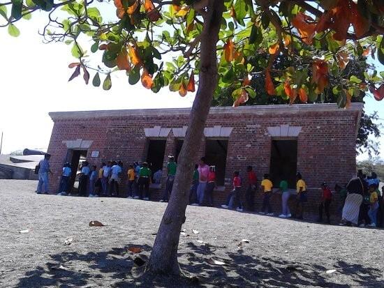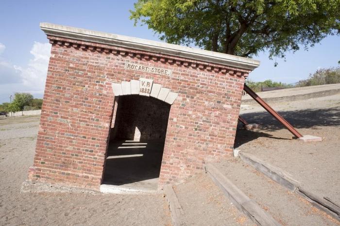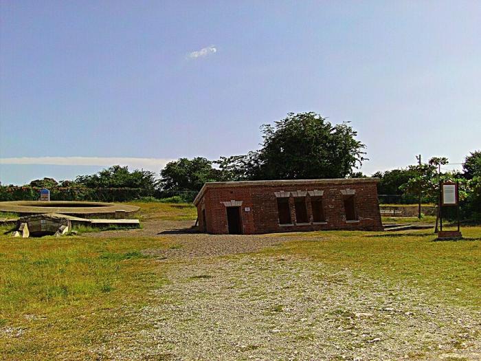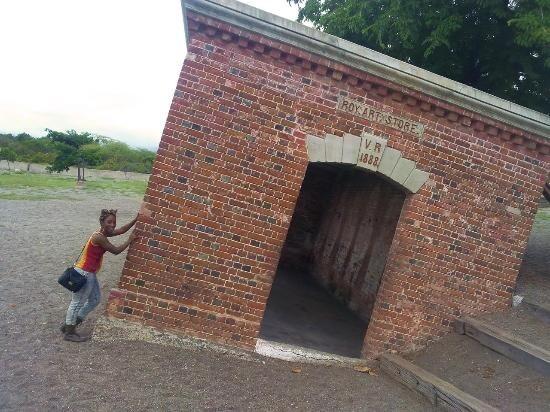 Расположенный на западной оконечности Палисадос-Стрип, он получил повреждения уже при ударе 1692 года, но настоящим бедствием для него стало землетрясение 1907 года. Многие пушки форта навсегда ушли в песок, целые участки исчезли, а Артиллерийский дом накренился и наполовину осел в грунт, превратившись в ту самую особую достопримечательность.