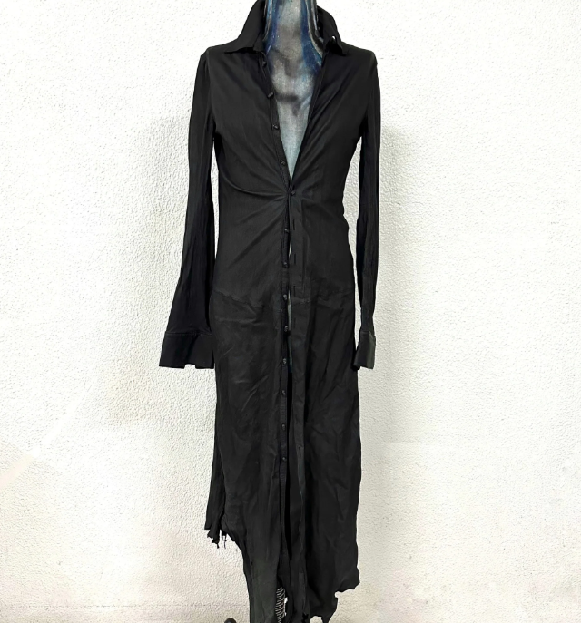 В производстве используются необычные материалы и ручная работа: от обработанного кашемира и шерсти до шёлка и кожи. Каждое изделие проходит путь от симметричного базового кроя до сложной асимметричной формы за счёт деформации лекал.