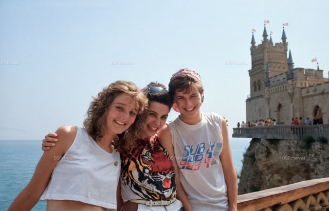 Победители конкурса на лучшее сочинение по теме "Почему я хотел бы поехать в СССР" британские школьники Жаклин Смит (слева) и Стивен Кинг на мысе Ай-Тодор в Крыму, Украинская ССР, 1988 год.