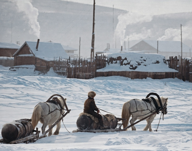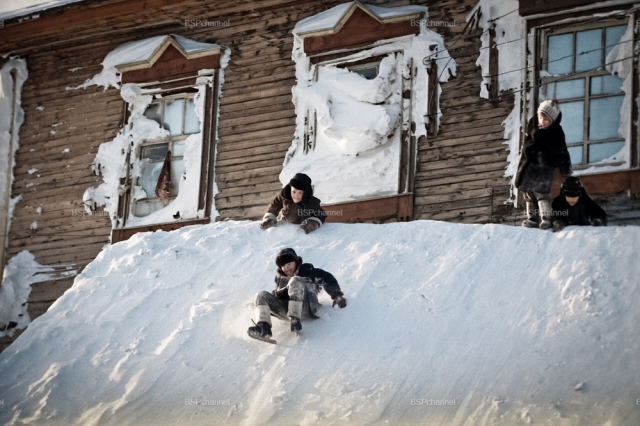 Зимние развлечения юных жителей поселка Тикси, расположенного на побережье моря Лаптевых в Якутской АССР, 1968 год.
