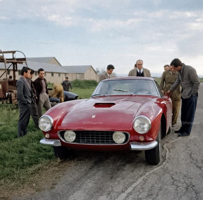 Прототип нового Ferrari 250 GT Berlinetta SWB на испытаниях на аэродроме Модены. Италия, 29 октября 1959 года.