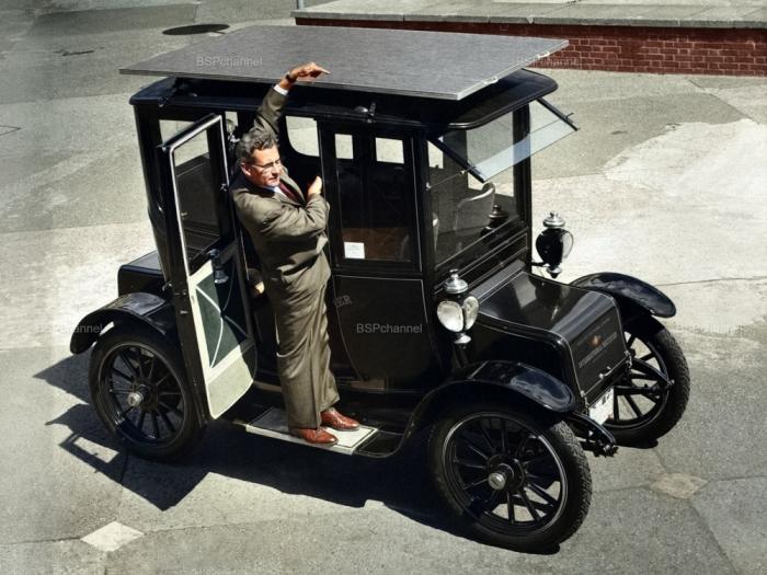 Автомобиль, работающий на солнечной энергии, — Baker Electric Mode 1912 года, адаптированный для работы от солнечных лучей, 1960 год.