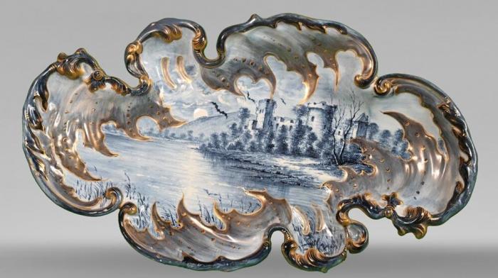 15. Глиняное блюдо, украшенное позолотой, изготовленное между 1863 и 1890 годами французским художником Эмилем Галле