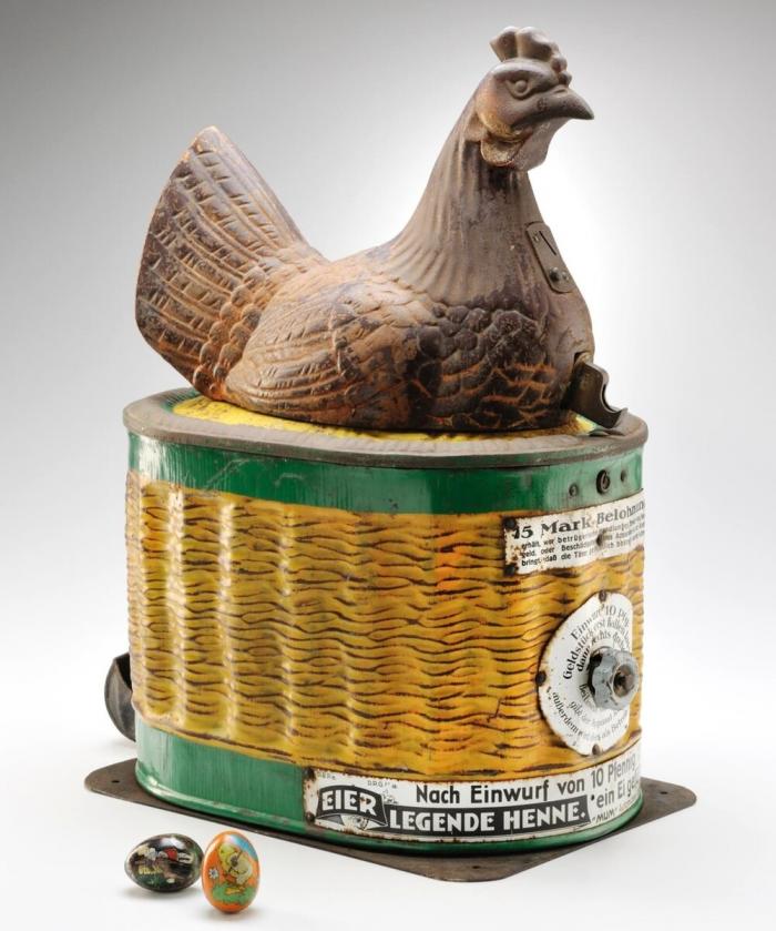 11. Автомат по продаже шоколадных яиц в форме курицы. Германия, 1920-1925 гг.