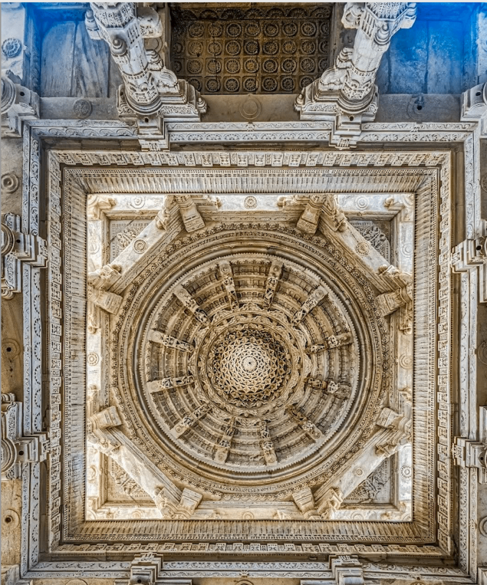 19. Замысловатый скульптурный потолок джайнских храмов Ранакпура представляет собой вершину архитектуры Мару-Гурджара, где геометрия сочетается с духовностью