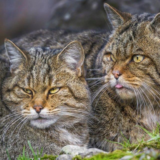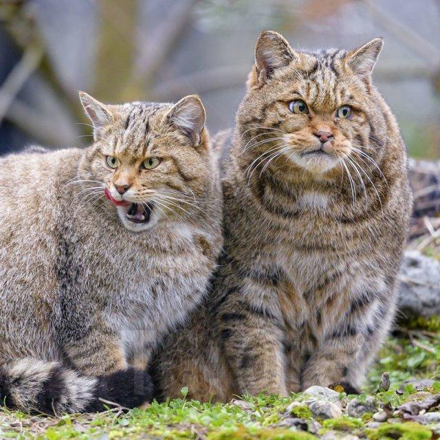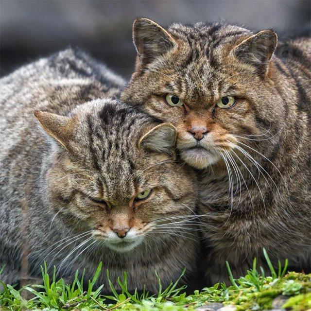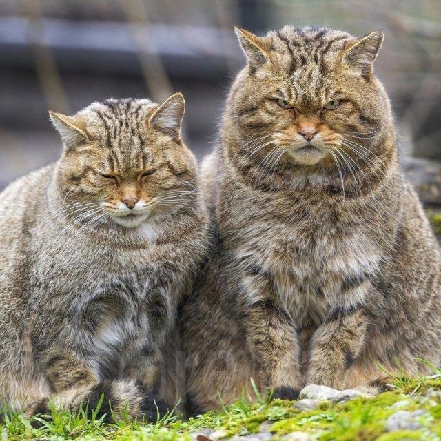 Это Европейские дикие кошки — близкие родственники домашних кошек. Их невозможно приручить, потому что это полностью дикий вид. Они не доверяют человеку, резко становятся агрессивными и, судя по их суровому виду, могут нормально так набить морду любому, кто рискнёт к ним подойди.